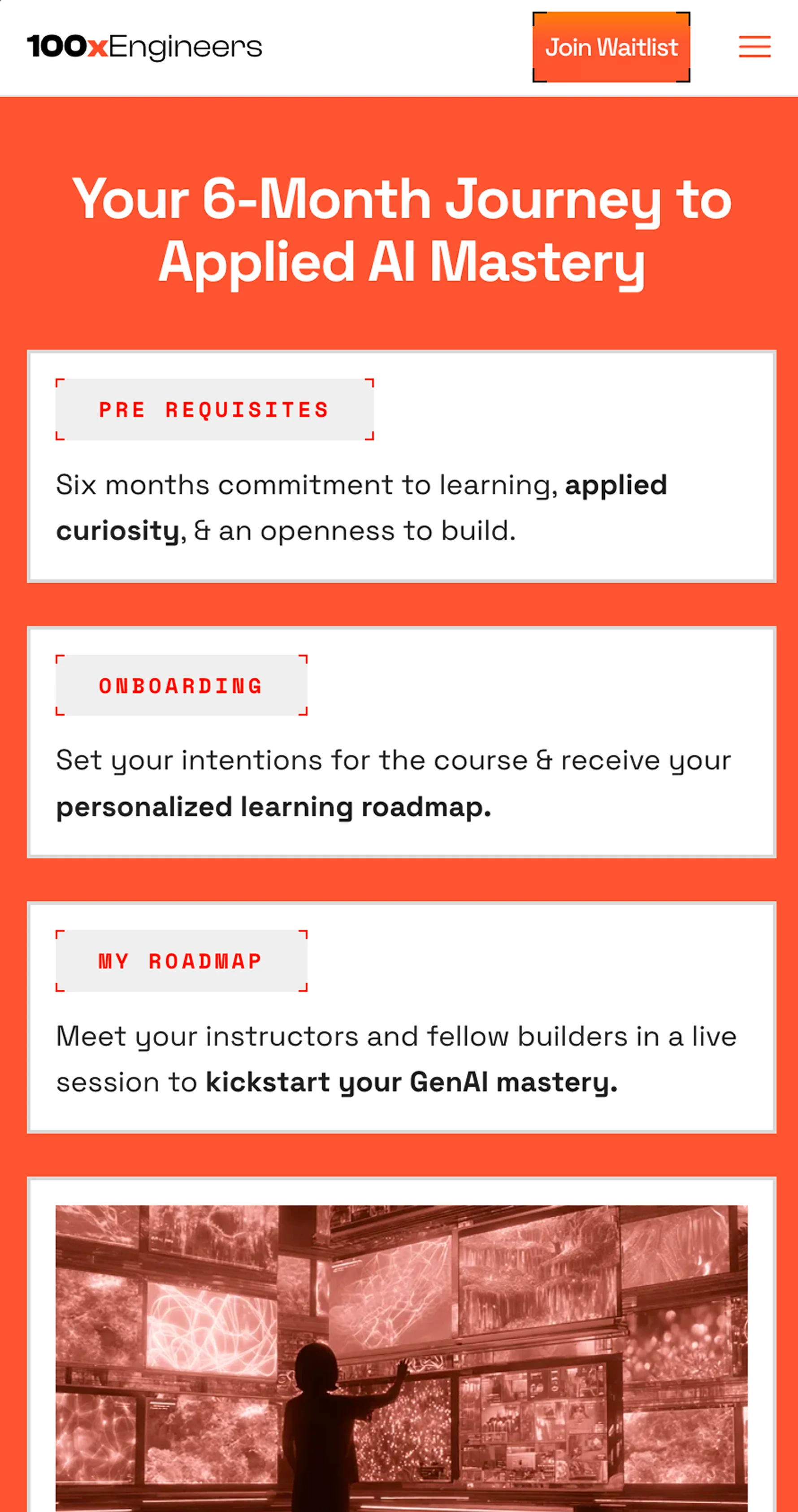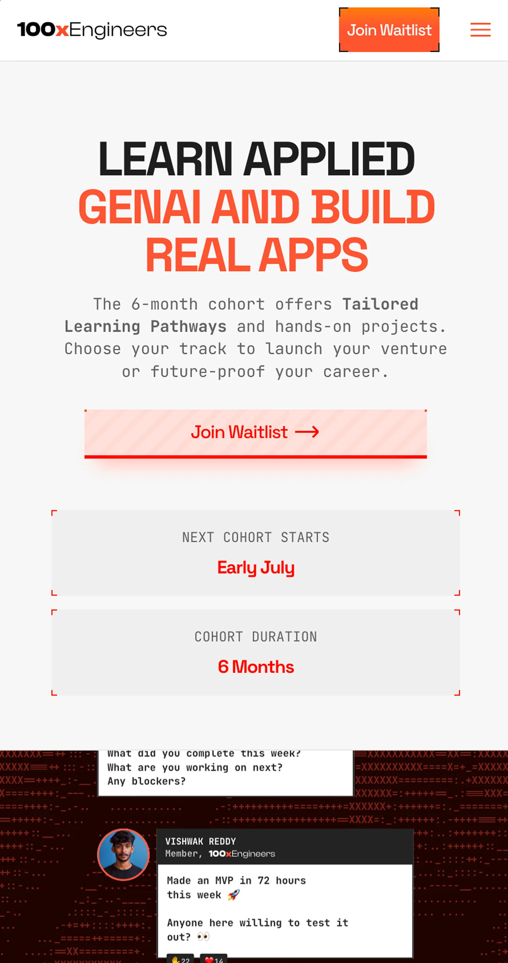 100xEngineers is one of India's most recognized AI engineering communities but their visual identity hadn't kept pace with their ambition. The site read "hardcore bootcamp" to an audience of senior professionals looking for transformation. They needed a design system that felt futuristic and interactive across web, presentations and merch.
