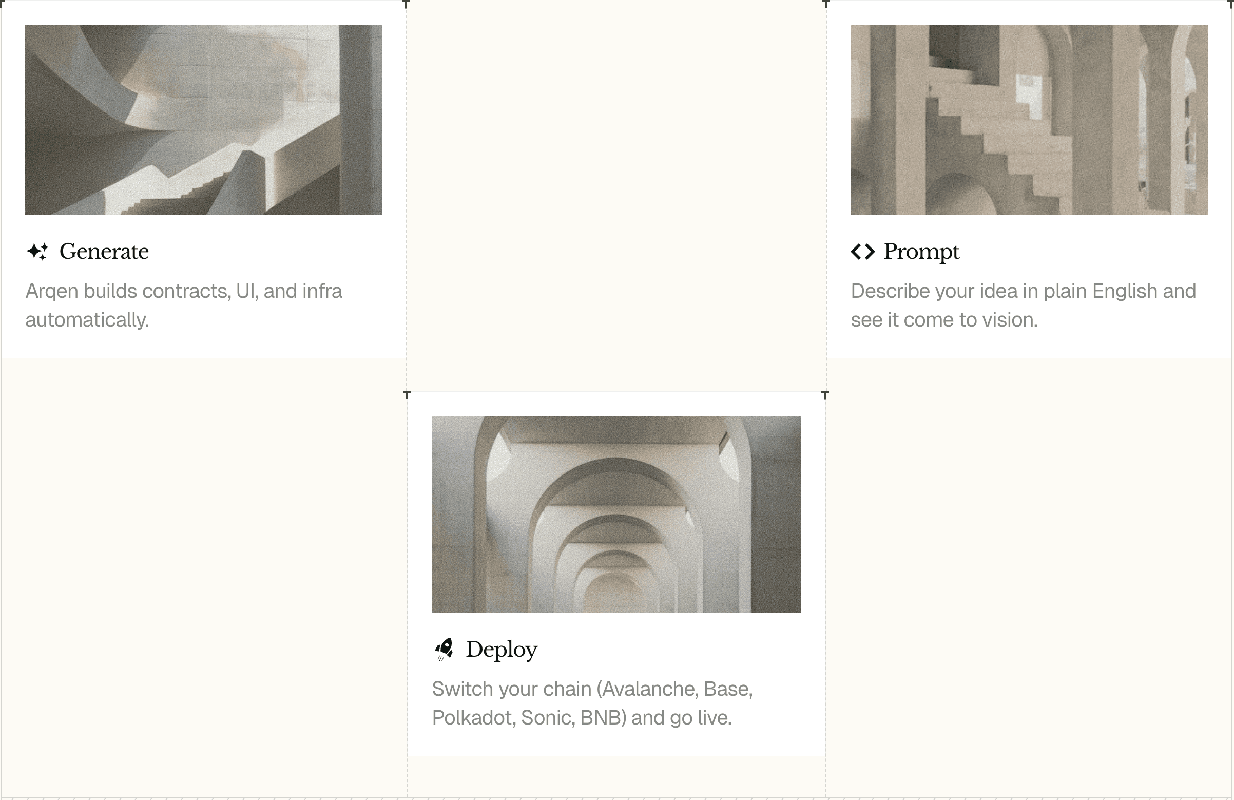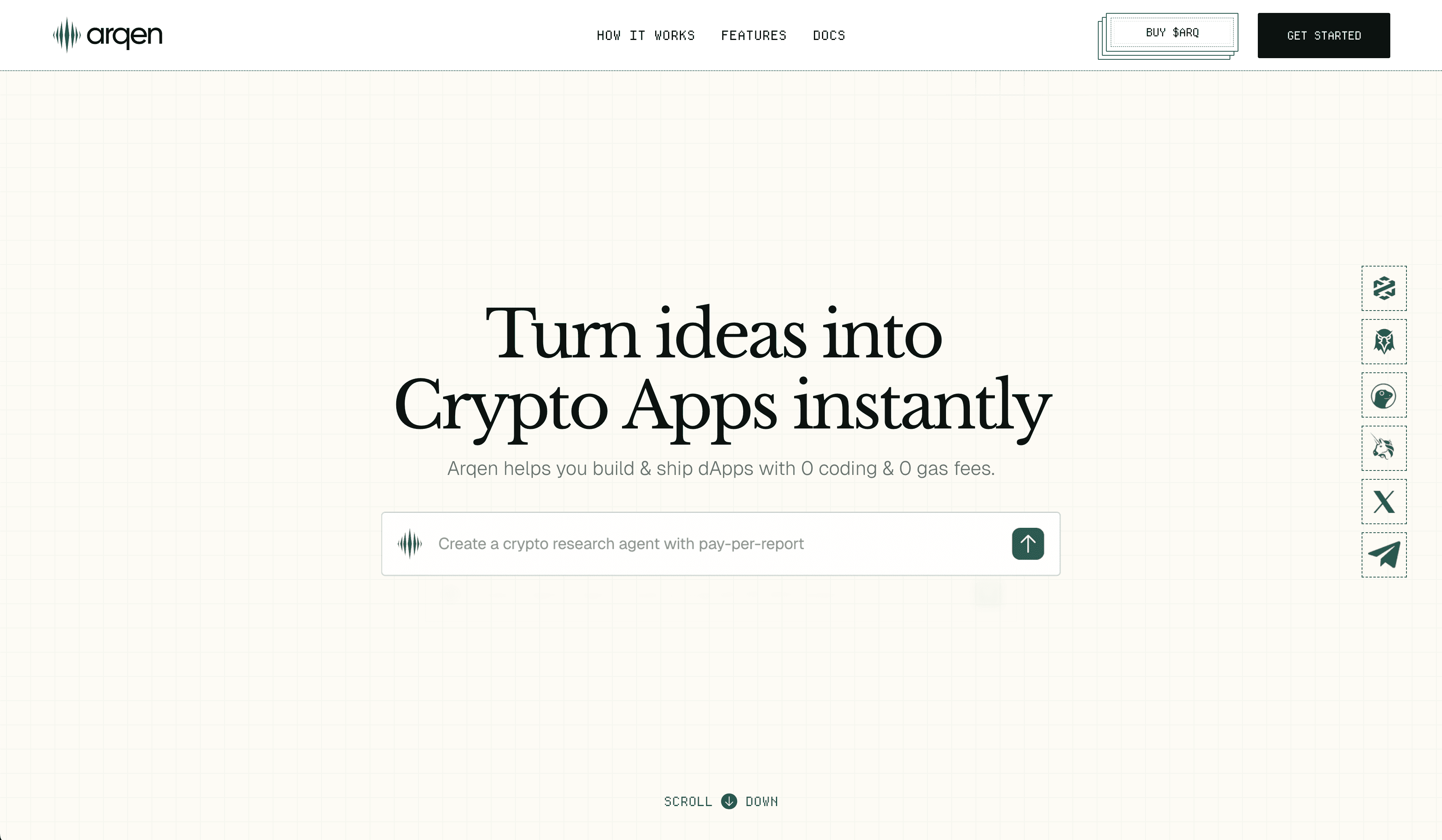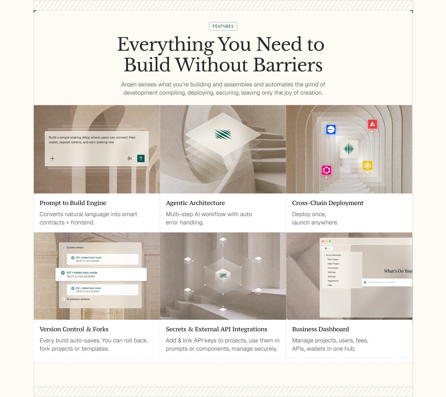 Arqen is a Web3 AI platform that empowers builders to turn plain-English ideas into fully functional, cross-chain decentralized applications instantly, handling smart contracts, UI, and infrastructure automatically so creators can build, deploy, and scale across multiple blockchains without writing code or worrying about gas fees. We led the creative direction for their website, delivering a newly refreshed look that better reflects the speed, ambition, and future-focused nature of the platform.