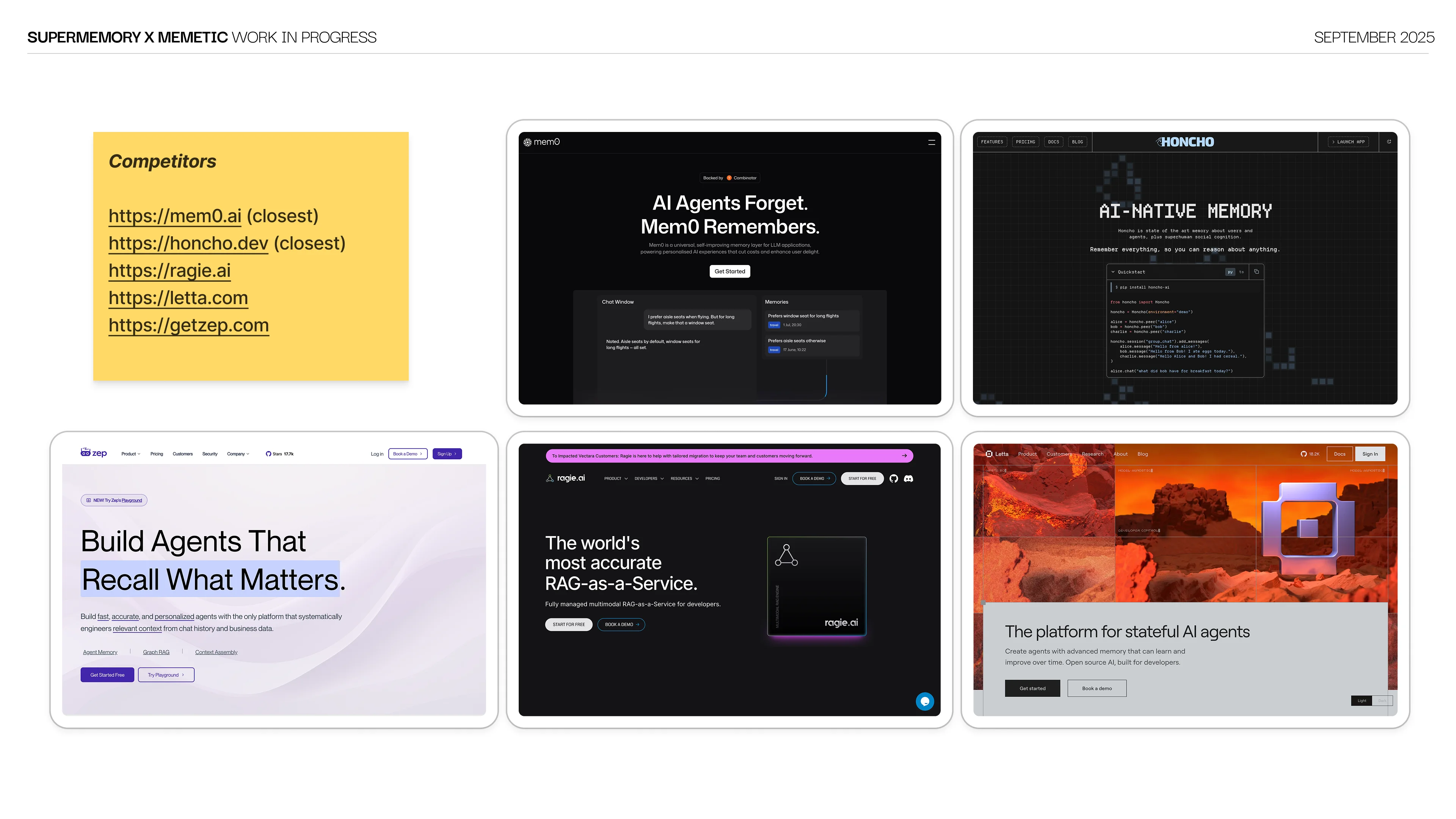 Two-hour brand workshop with Dhravya, CEO and founder of Supermemory. Synthesized findings with AI and call transcripts into a visual direction. Shipped the first enterprise-focused website alongside their fundraise announcement.